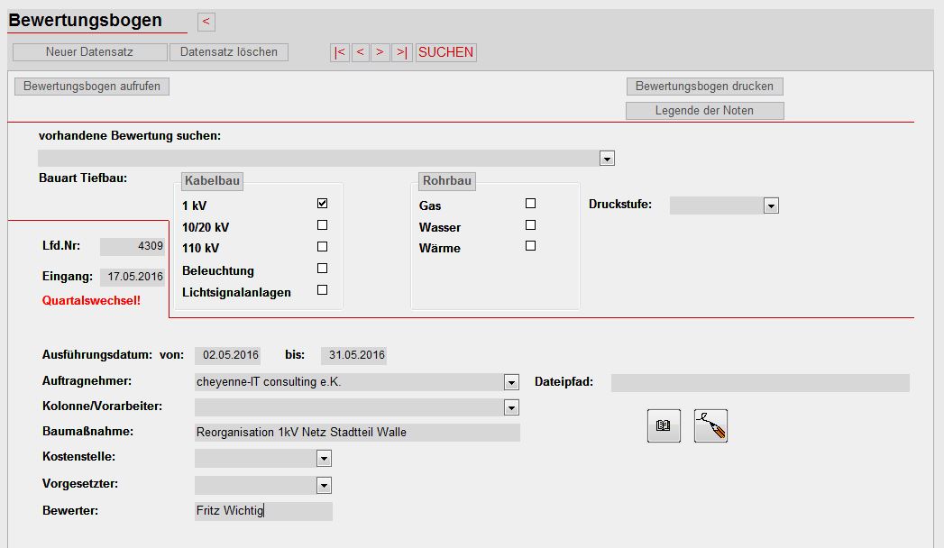 Ist unser Bewertungstool für Baumassnahmen, die von Fremdfirmen bearbeitet werden. Entstanden ist vor vielen Jahren die erste Version dieser