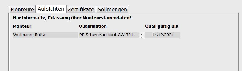 - Erfassung und Kontrolle von Monteursqualifikationen, mit automatischem Ablauf der Zulassungen